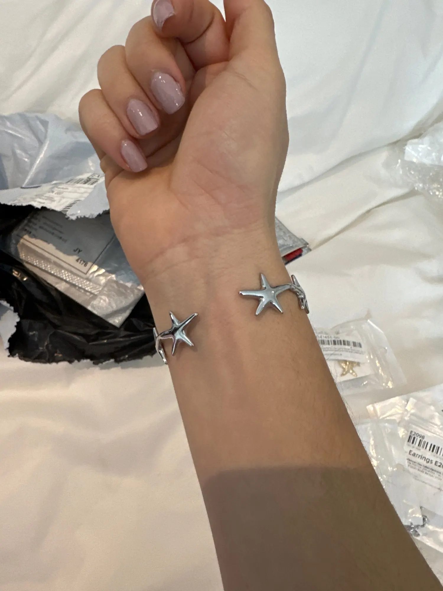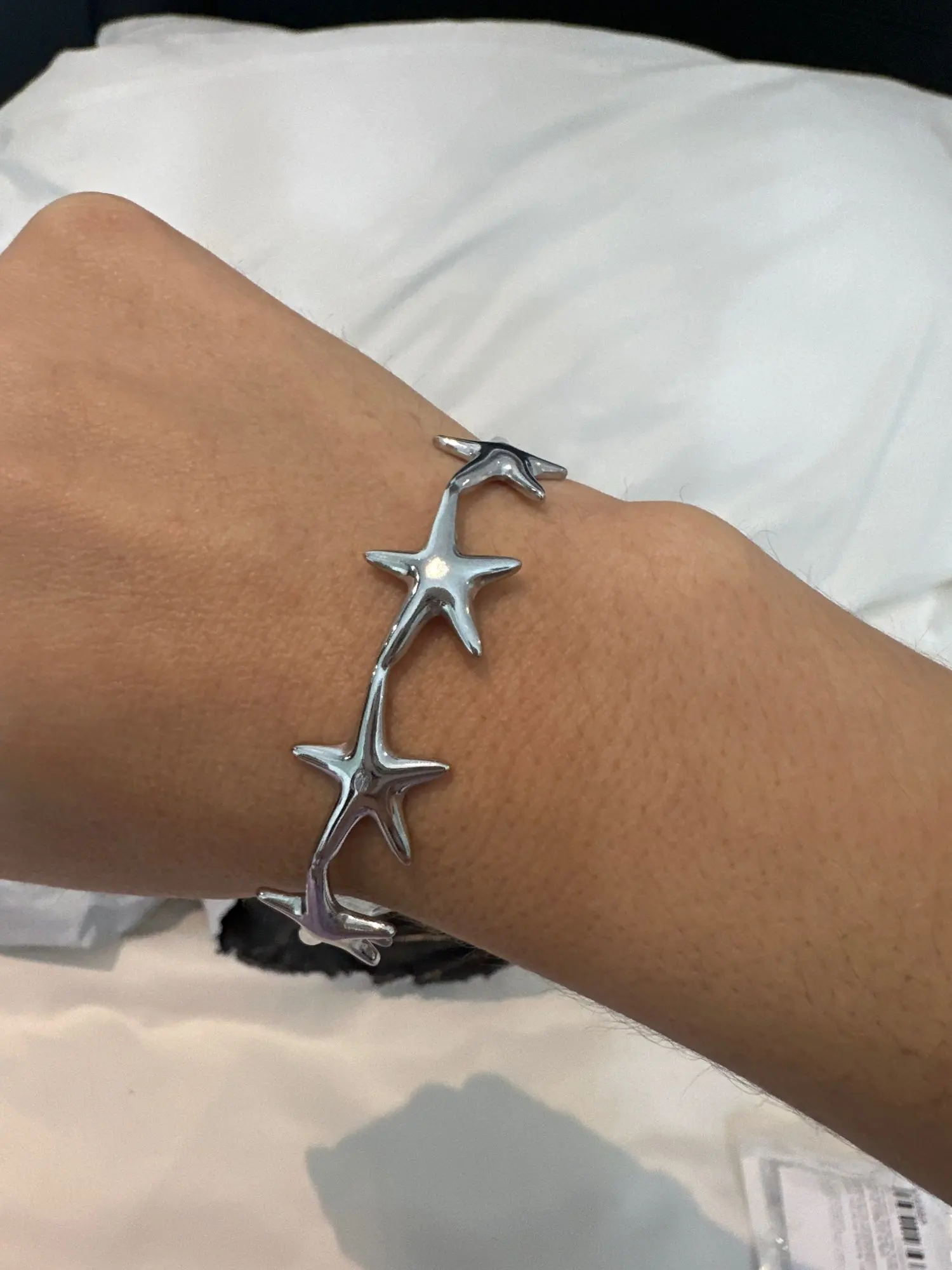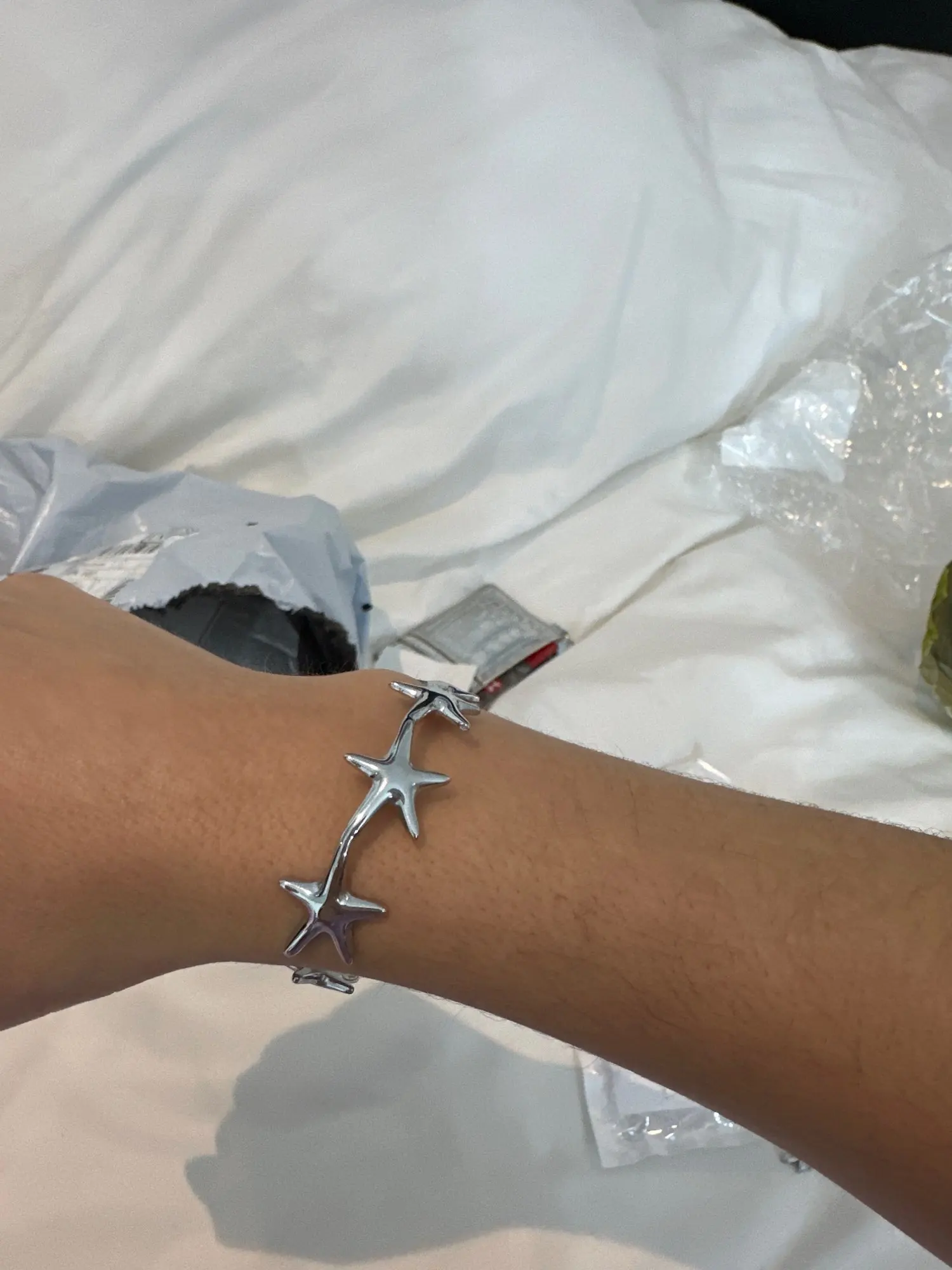 Crafted from durable 316L stainless steel, the Thalassa bangles blend strength with elegance. Featuring a starfish design, these cuff bracelets bring a subtle marine-inspired aesthetic to your jewelry collection. Available in both gold and silver tones, they offer versatile styling options for everyday wear or special occasions. Their corrosion-resistant material ensures long-lasting shine and comfort, making them a sophisticated choice for women seeking fashion-forward yet enduring accessories.