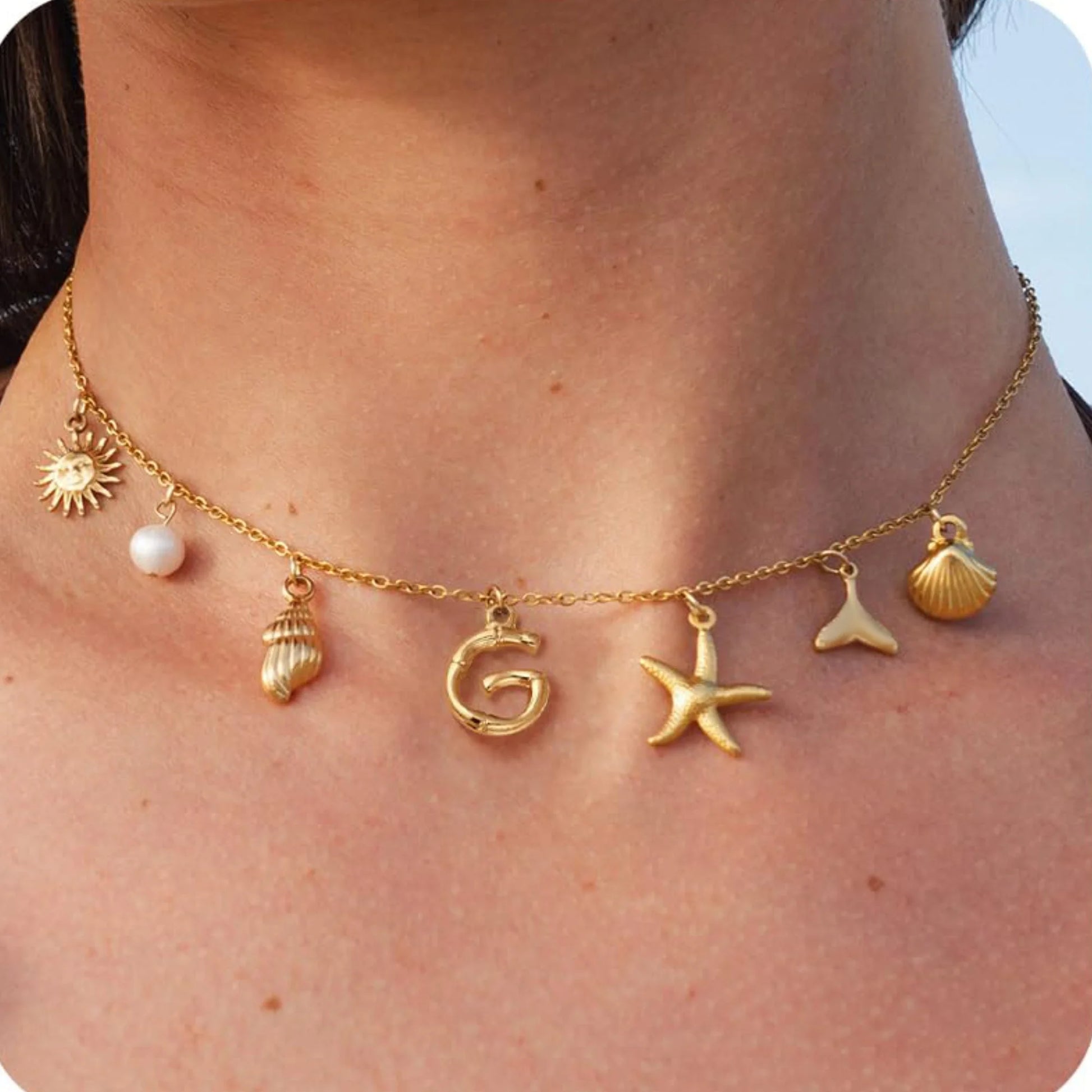 Elevate your look with the Ocean Layers necklace, featuring a delicate sun, starfish, and shell charm crafted from 18k gold-plated stainless steel. Designed for durability and water resistance, this piece withstands daily wear while adding a refined coastal elegance to any outfit. Expertly crafted for lasting shine and comfort, it’s the perfect accessory for those who appreciate both style and resilience.