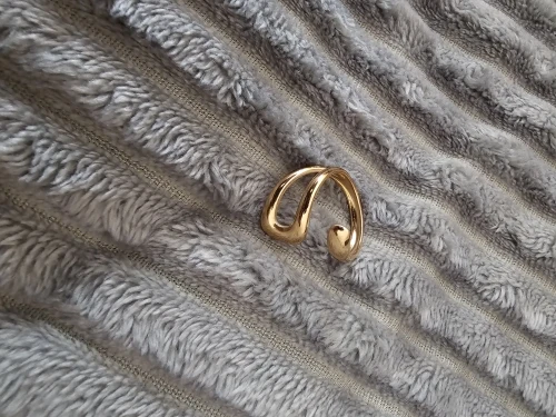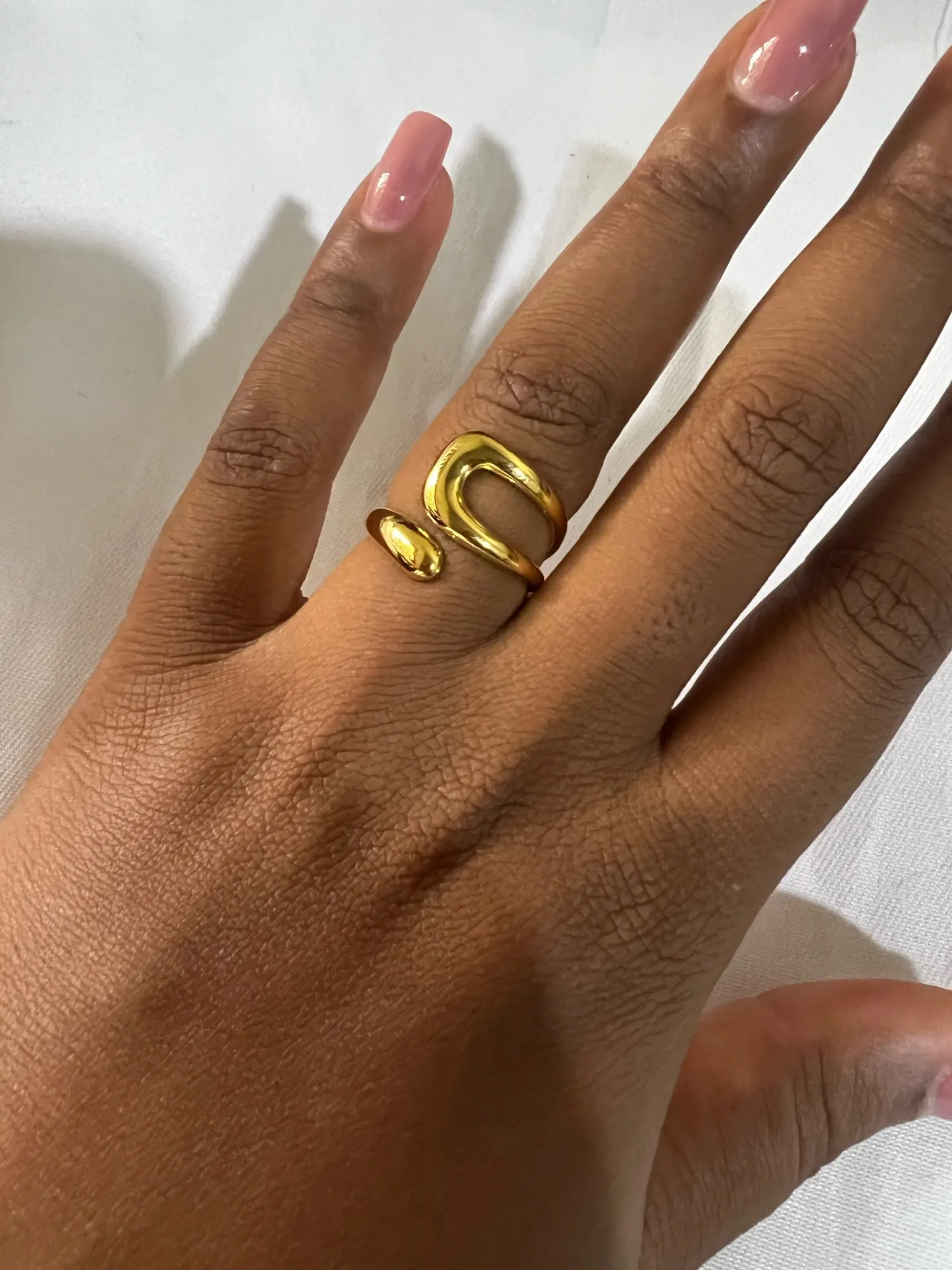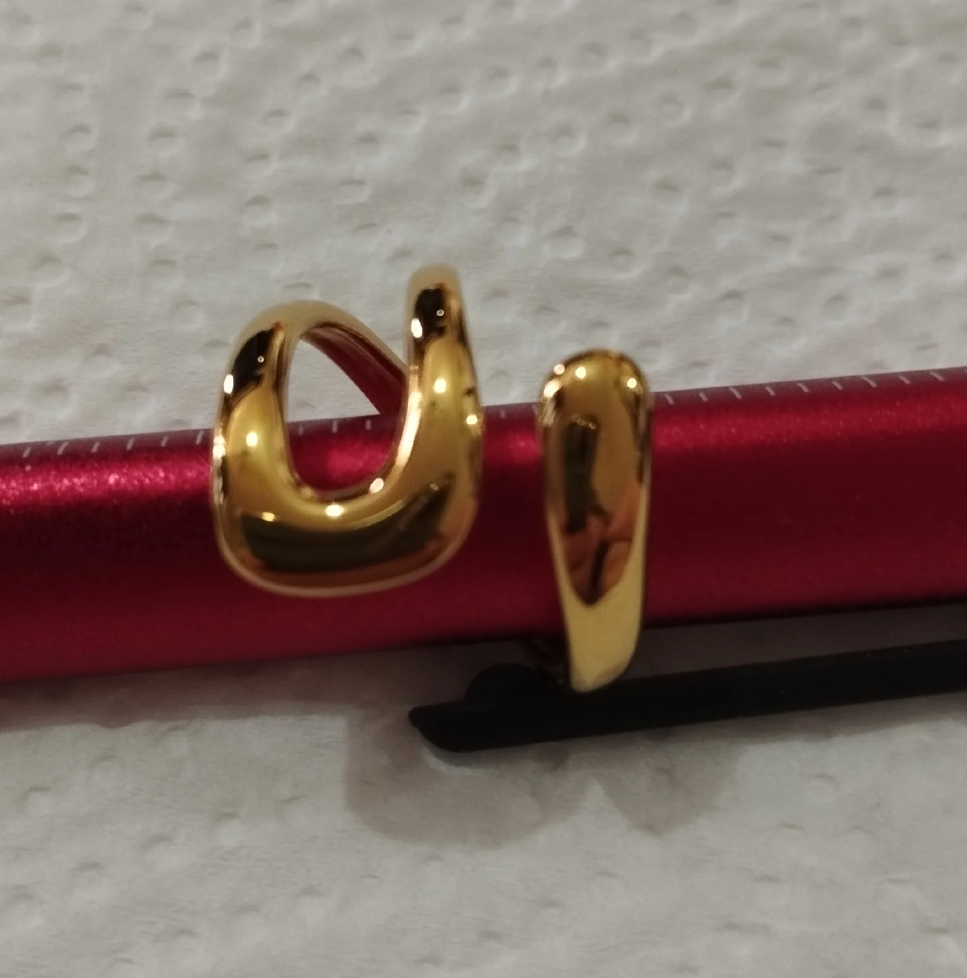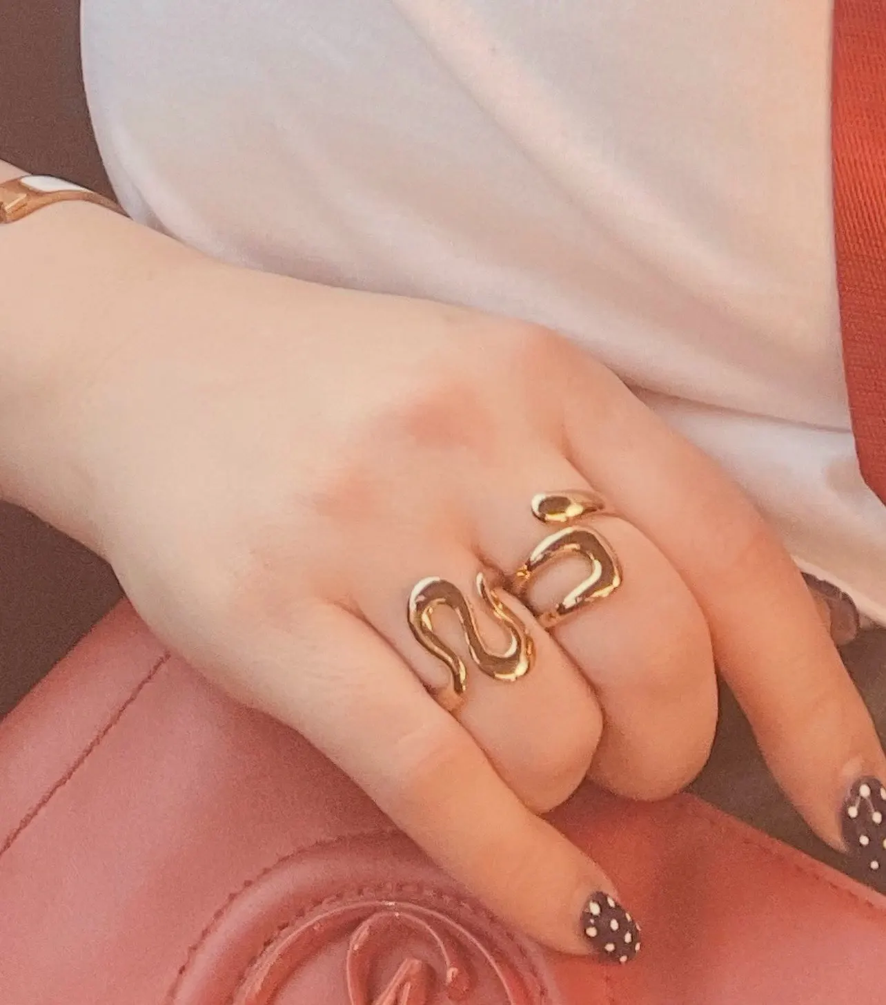 The Modern Muse Ring features a bold, geometric hollow design crafted from stainless steel with a layered wide band. Its textured metal surface offers a sophisticated golden hue that is both waterproof and durable, ensuring lasting style for daily wear. This ring blends simplicity with contemporary elegance, making it an essential accessory for the discerning woman.